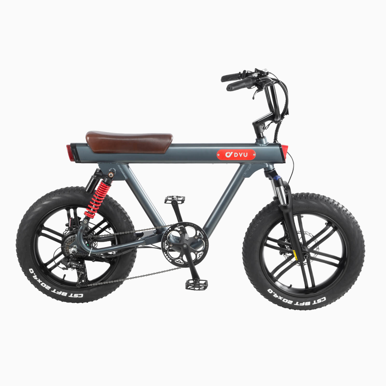 A great example of a high performance fat tire e-bike is the DYU V8. This aggressive looking e-bike comes equipped with a powerful 750W motor and long range 48V 15.5Ah removable lithium battery.